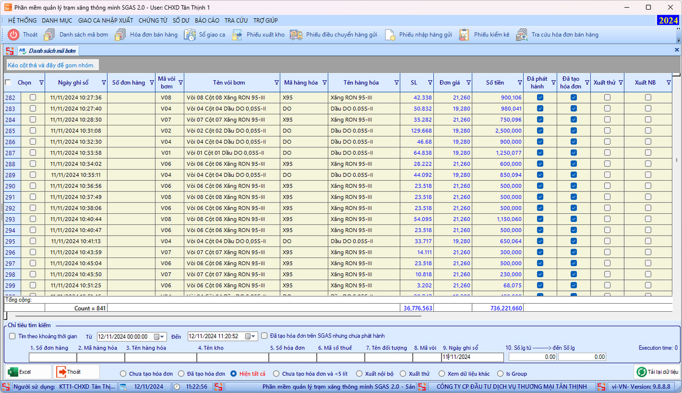 - Bán hàng và tạo phát hành hóa đơn trực tiếp trên phần mềm SGAS. Đáp ứng yêu cầu về quá trình xuất hóa đơn, tích hợp với phần mềm pháy hành hóa đơn điện tử một cách tự động, chính xác kịp thời theo TT78.